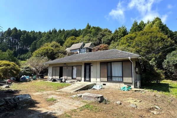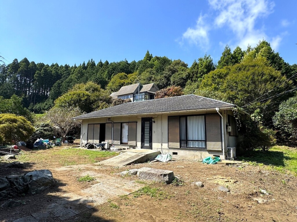 勝浦市の内陸部に位置する戸建を紹介します。敷地は約850坪と広大で家庭菜園やドッグランが作れます。また建物が2棟あり、上部に建つ平家からの眺望は良好です。